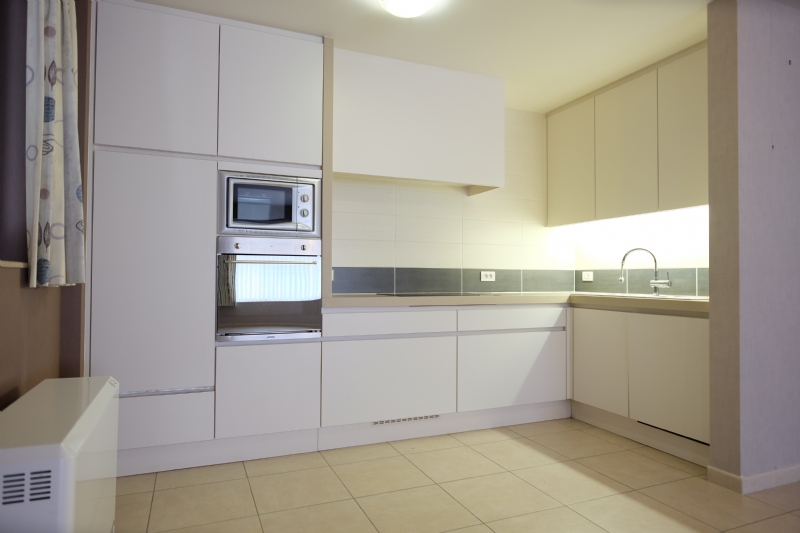 Via de inkomdeur komt u het appartement binnen in de hal. Dit centrale punt geeft toegang tot alle ruimtes, nl. een apart toilet (hangwc) met lavabo, living, slaapkamers, badkamer en berging. Vanuit de hall komt u in de ruime, lichtrijke living met open keuken. Vanuit de living heeft u zowel links zicht op het park en rechts zicht op het marktplein van Gits. De open keuken is rondom rond voorzien van kasten met stenen werkblad. De keuken is ook volledig uitgerust met een inductie kookplaat, dampkap, grote frigo met vriesvak, oven, microgolfoven en vaatwasmachine.