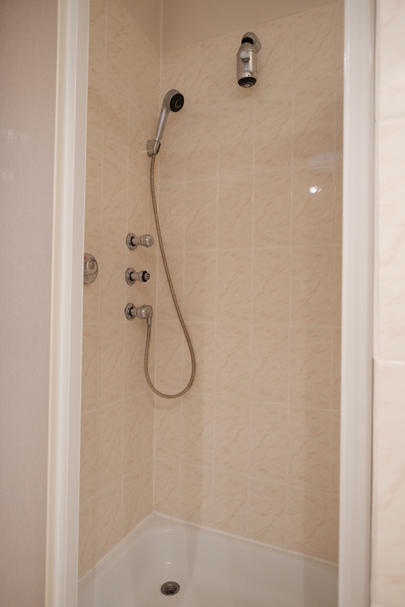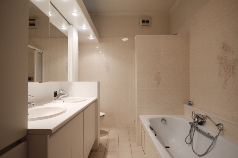 Sanitaire installatie : 3 wc’s, 2 ligbaden, 1 douche, 2 x 2 wastafels, 2 dubbele spoeltafels, 1 uitgietbak ;