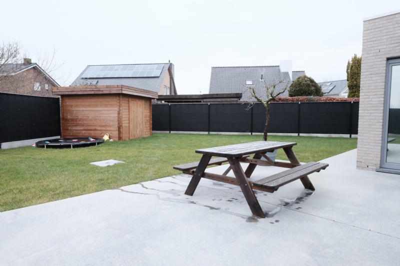 Buiten tuin, tuinafsluiting, terras, tuinhuis, oprit,