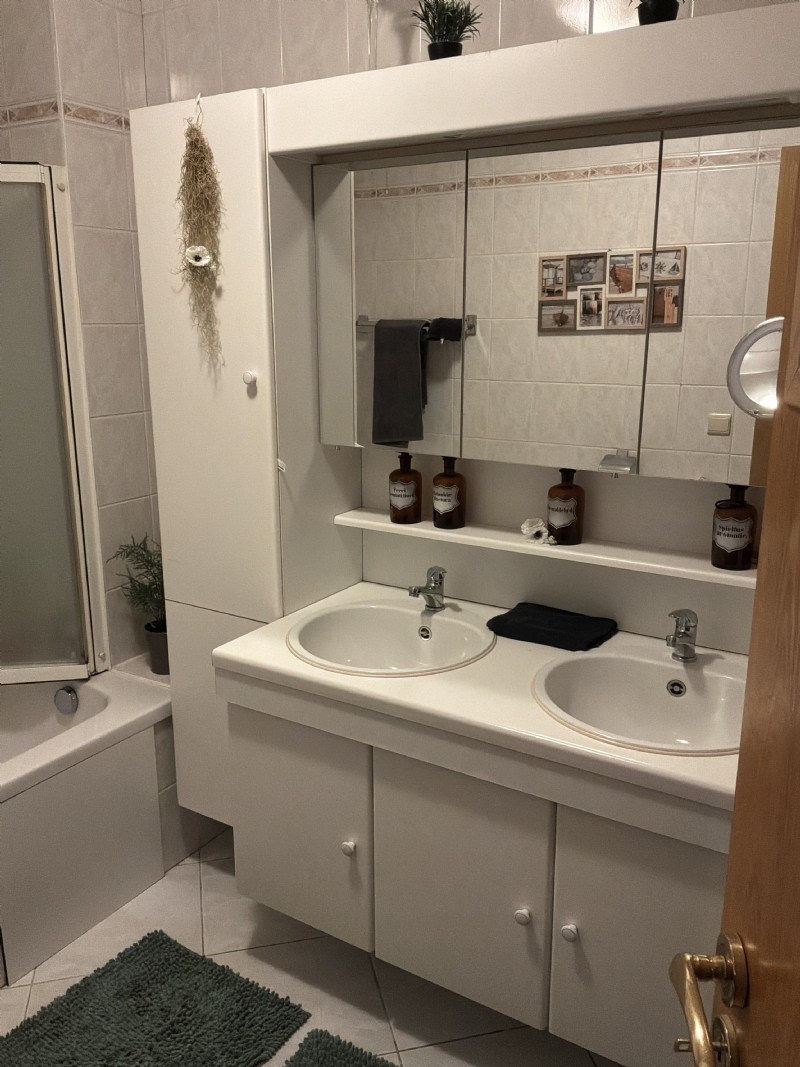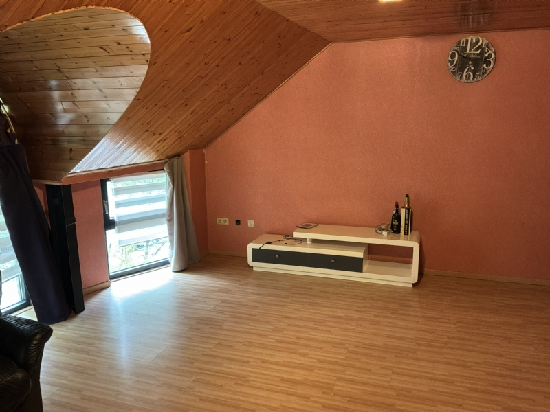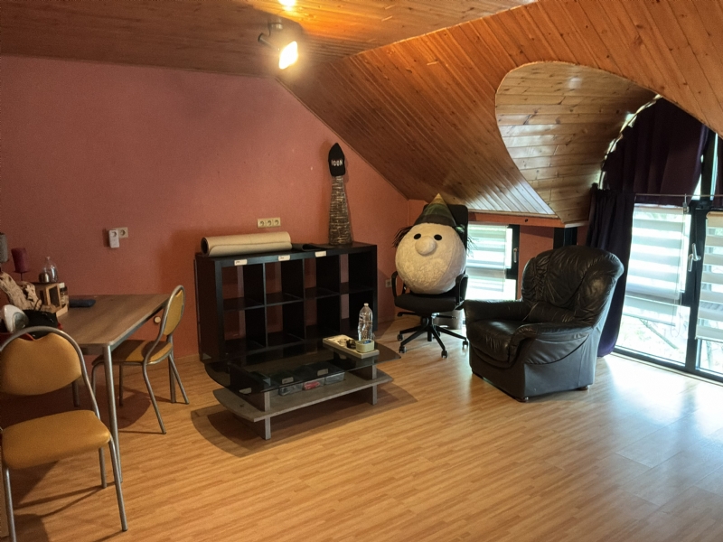 Twee ruime slaapkamers, tweede badkamer met douche, toilet en lavabo, en een zolderruimte.