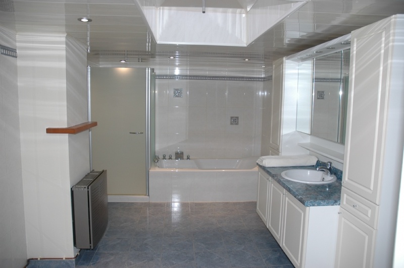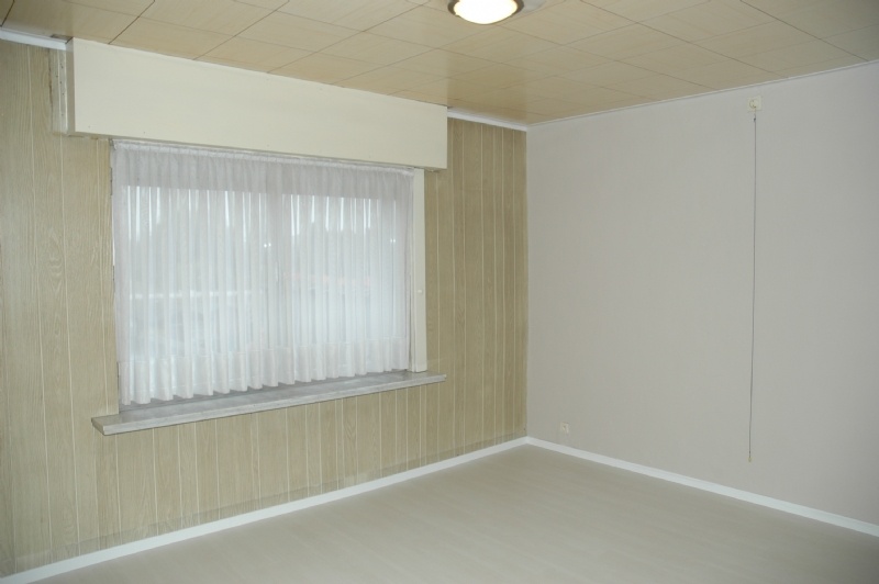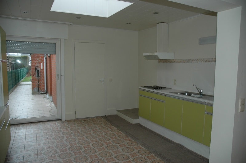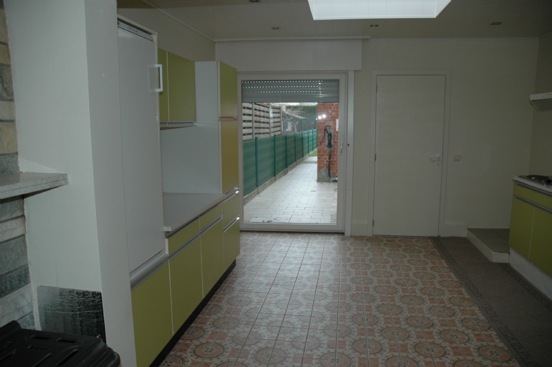 gelijkvloers: hal, livingruimte, ingerichte keuken met gasfornuis en frigo, vernieuwde badkamer (douche, bad en dubbel lavabomeubel), tuin met terras en tuinhuis, berging.