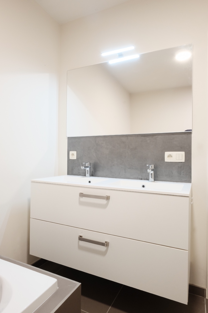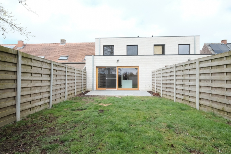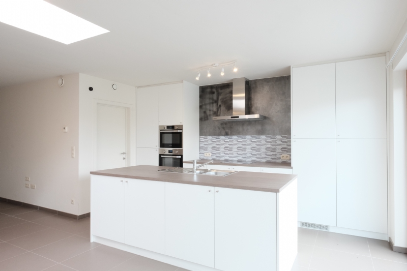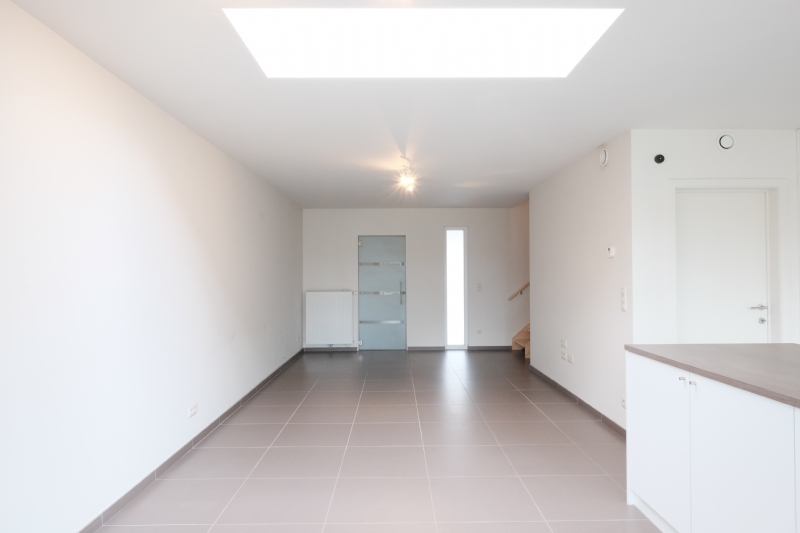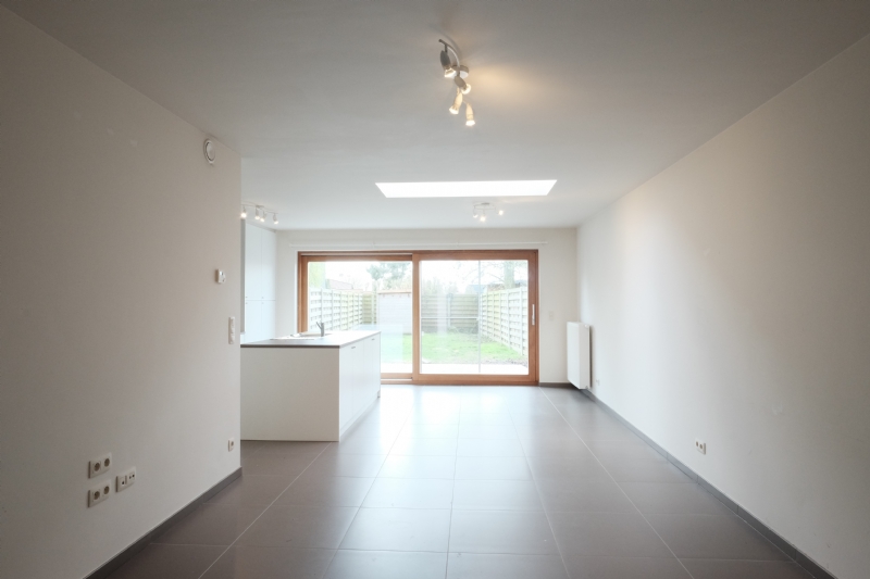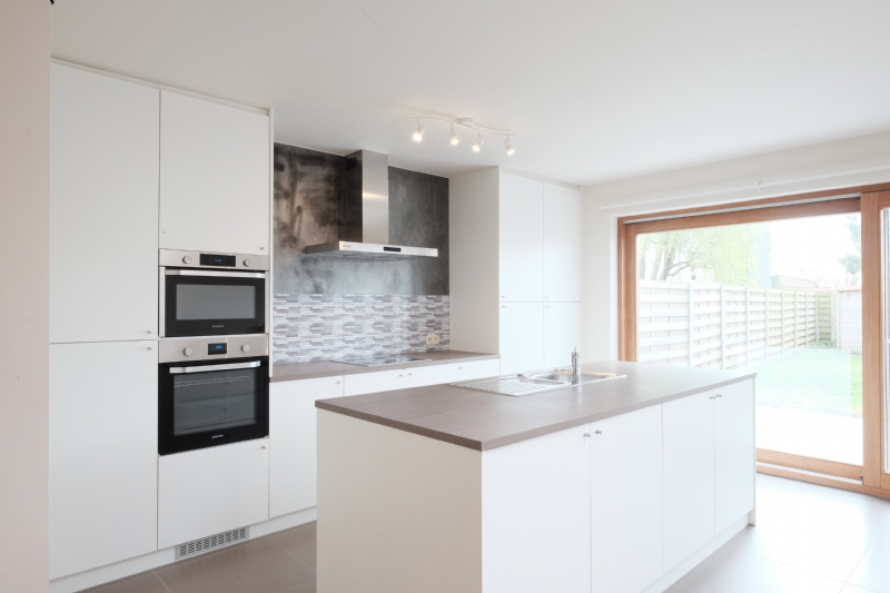 Deze hedendaagse woning verwelkomt u via een verzorgde inkomhal met apart toilet. De ruime leefruimte vloeit naadloos over in een volledig uitgeruste open keuken, voorzien van keramische kookplaat, dampkap, vaatwasser, koelkast en oven — ideaal voor wie graag kookt én gezellig samenkomt.